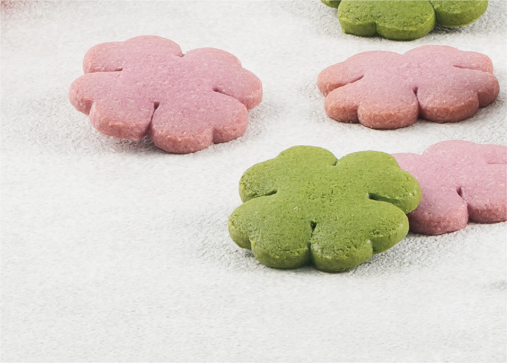 サブレのやわらかな緑色とあたたかみのあるピンク色、